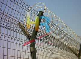 機場護欄網(wǎng)又稱作“Y型安全防御護網(wǎng)”,由Y型支架立拄,加強型焊接片網(wǎng),安全防盜連接件和熱鍍鋅刀片刺網(wǎng)組成,是強度和安全防御性級別很高的圍界護欄網(wǎng)產(chǎn)品。被廣泛應用在機場、軍事基地等高安全場所。這種護欄網(wǎng)的突出特點就是美觀實用、安全性高、防攀爬能力好,網(wǎng)體連接方式采用特制SBS緊扣件,有效防止人為的破壞性拆卸,橫向四道折彎加強筋,使網(wǎng)面強度顯著增加。