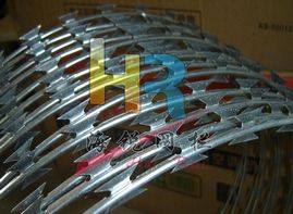 規(guī)格多,品種全.(2012)8001-8002/鐵路工程建設(shè)通用規(guī)格.刺絲滾籠刺長(zhǎng)22mm, 圈徑為500mm,芯線2.5mm,刀刺中心間距34mm,刀片厚度0.5mm,刺絲滾籠圈距200mm,立柱支架30x50x2mm,縱向刺絲拉筋2.5x2.2x20mm,支架抱箍為8mm,配件都采用熱鍍鋅處理.